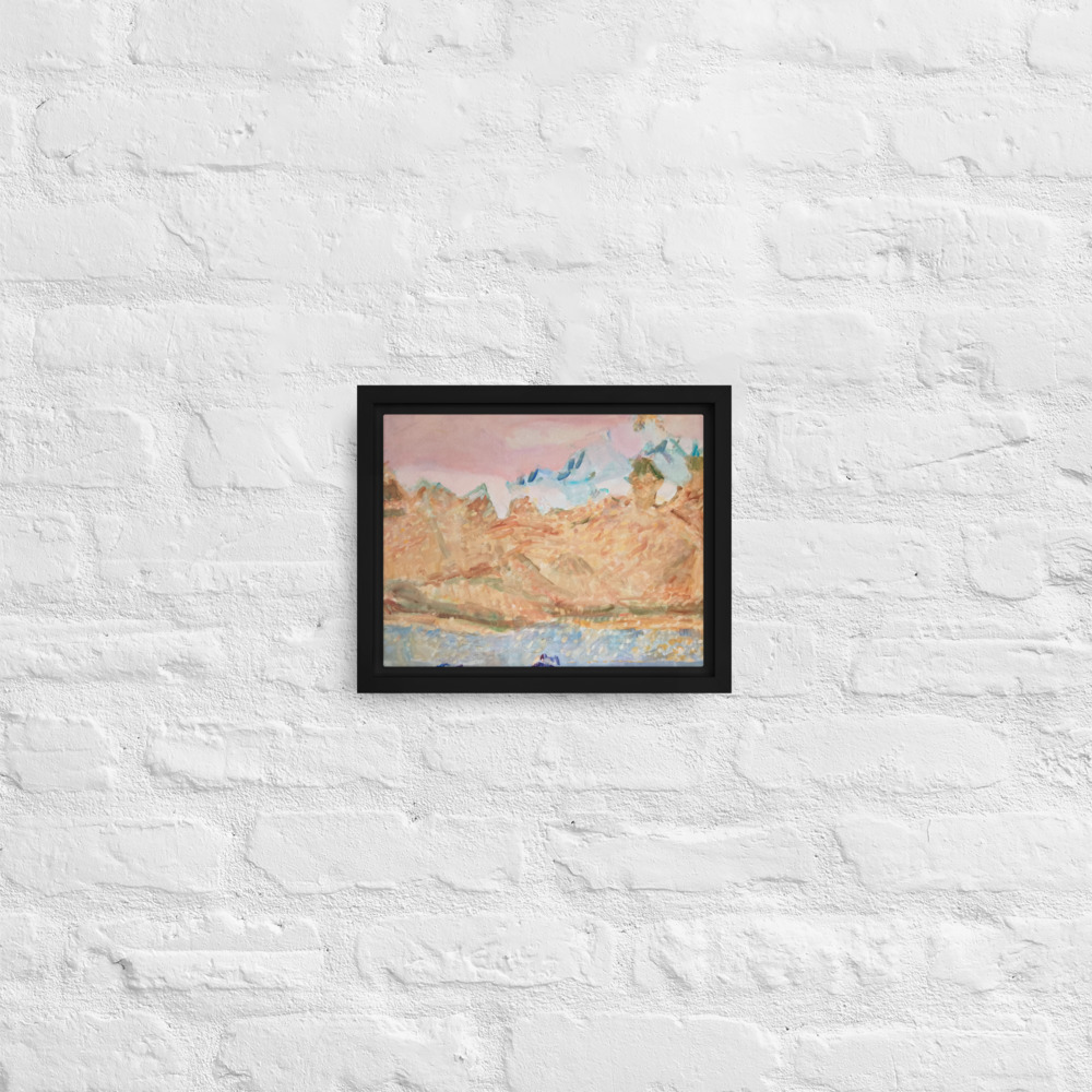 - The framed canvases with brown and black frames have a black inside around the canvas, and the canvases with white frames have a white inside around the canvas.